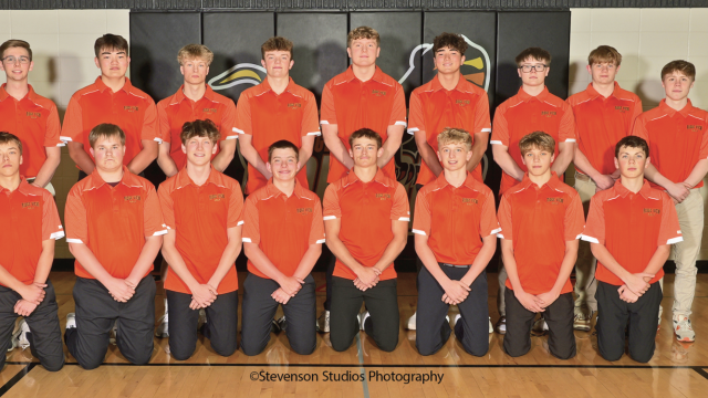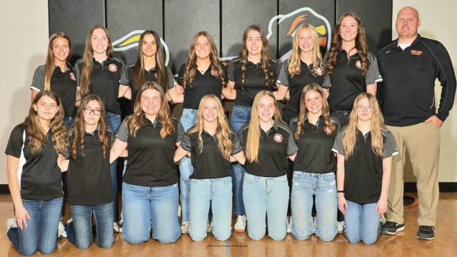 2026 Ridge View girls golf: Front, from left: Addison Domino, Trinity Stevenson, Carli Friedrichsen, Elizabeth Forristal, Chloe Kinney, Laney Georg, Megan Domino. Back row: Chloe Murphy, Madelynn Horan, Savannah Cudaback, Zoey Aschinger, Claire Wandrey, Brooklynn Lukins, Gillian Chance, Head Coach Brian Bode. Photo courtesy of Stevenson Studios