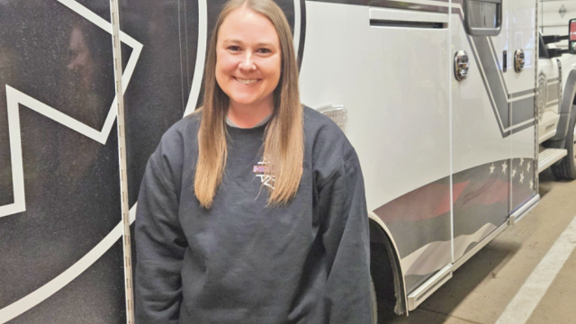 Shantel Todd with the Holstein Fire & Rescue ambulance. Photo by Kelby Regennitter